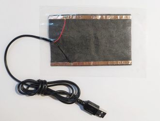 Нагревательный элемент USB для размещения в перчатки, обуви, наколенниках, одежде, тапочках с питанием от USB и нагревом до 50 градусов размером 12*7,5 см и основой - ламинат размером 16*10,5 см. Также можно использовать как теплый коврик для рук при работе за компьютером. Питание осуществляется от порта USB (5V): а) стационарный вариант - от компьютера или зарядного устройства (в т.ч. в машине от прикуривателя); б) мобильный вариант - от повербанка. Нагревательный элемент usb состоит из нагревательной пластины размером 12*7,5 см , запаянной в основу - прозрачный ламинат, размером 16*10,5 см. Для питания используется USB порт с напряжением 5V. Нагревательный элемент нагревается до температуры 38-50 градусов (ток потребления до 0,9 А), с температурой до 50° в статичном состоянии. Длина провода 110 см.